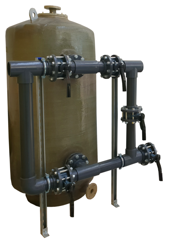 | Filtr Di (mm) | Powierzchnia filtracyjna, m2 | I/O = d | DNs | DN1 | Wydajność przy 30m/h, m3/h | H – Media 1m (mm) | H – Media 1,2m (mm) |