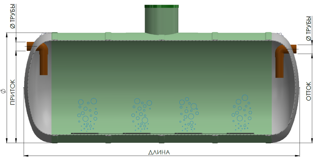 Весь лишний биологический осадок хранится в отдельном резервуаре.